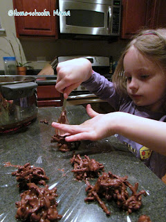 Then, have your kiddos take spoonfuls and drop them on to wax paper (or plastic wrap if you’re like me and keep forgetting to purchase more wax paper).